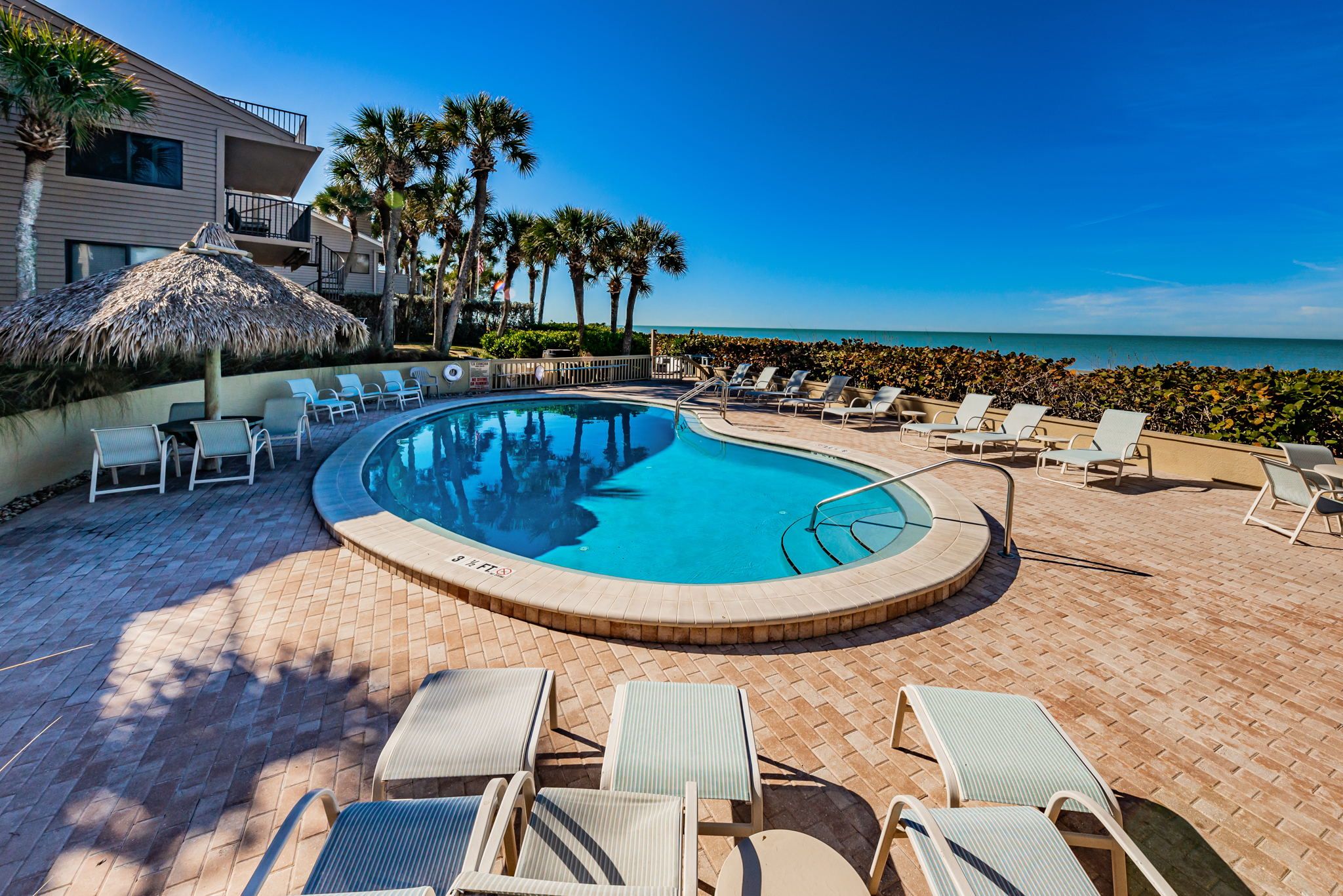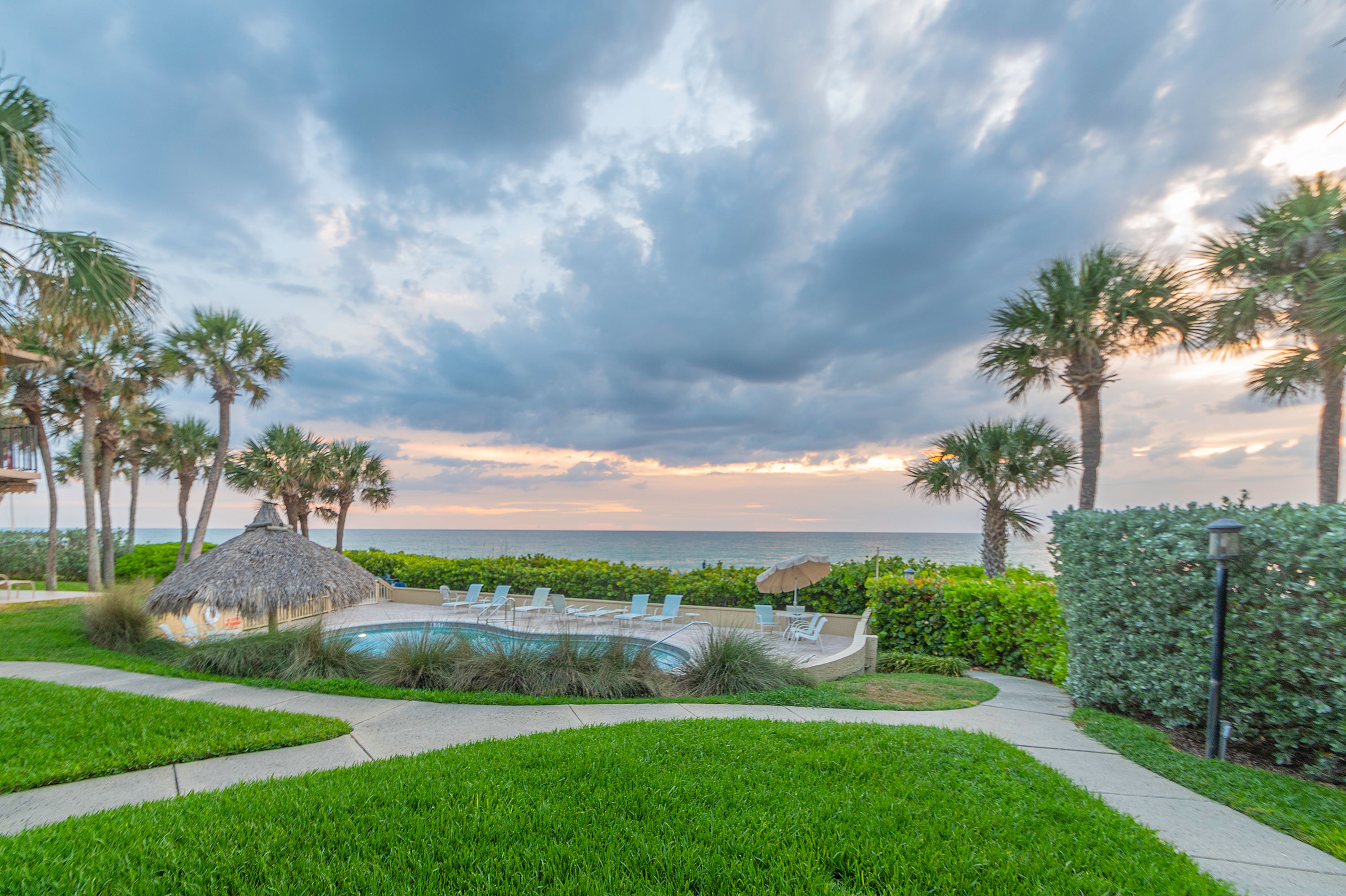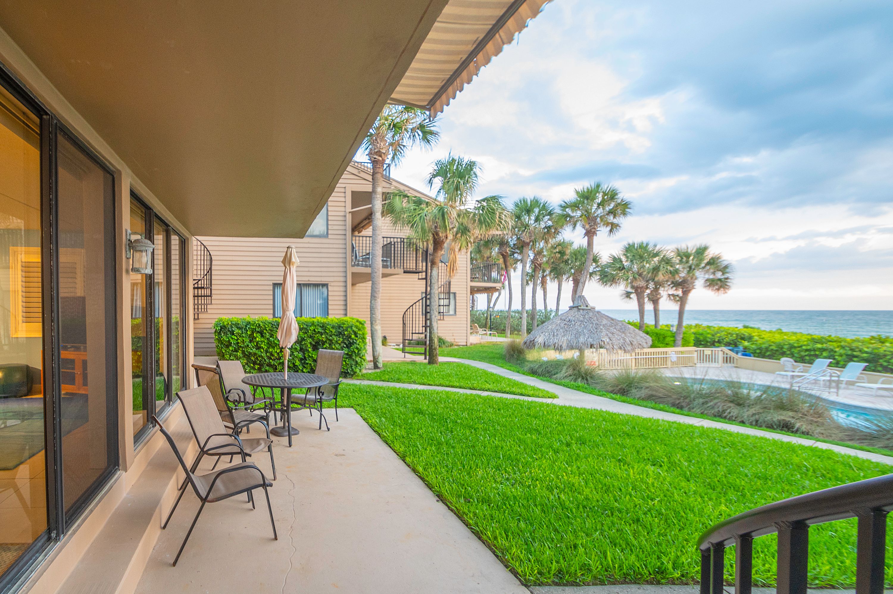 The community features a beachfront shared pool, BBQ grill area to use anytime. The beautiful landscaped community offers tropical plants and foliage to enjoy during a morning walk. This is all very private and is a quiet residential area.