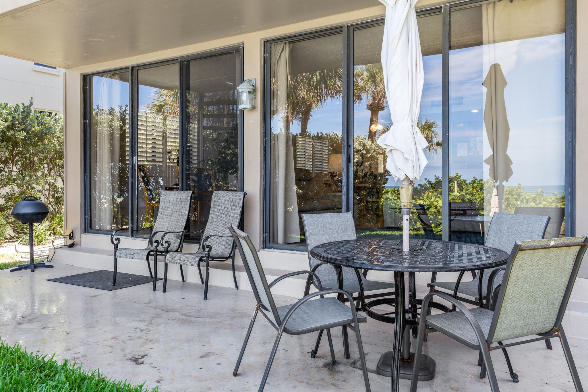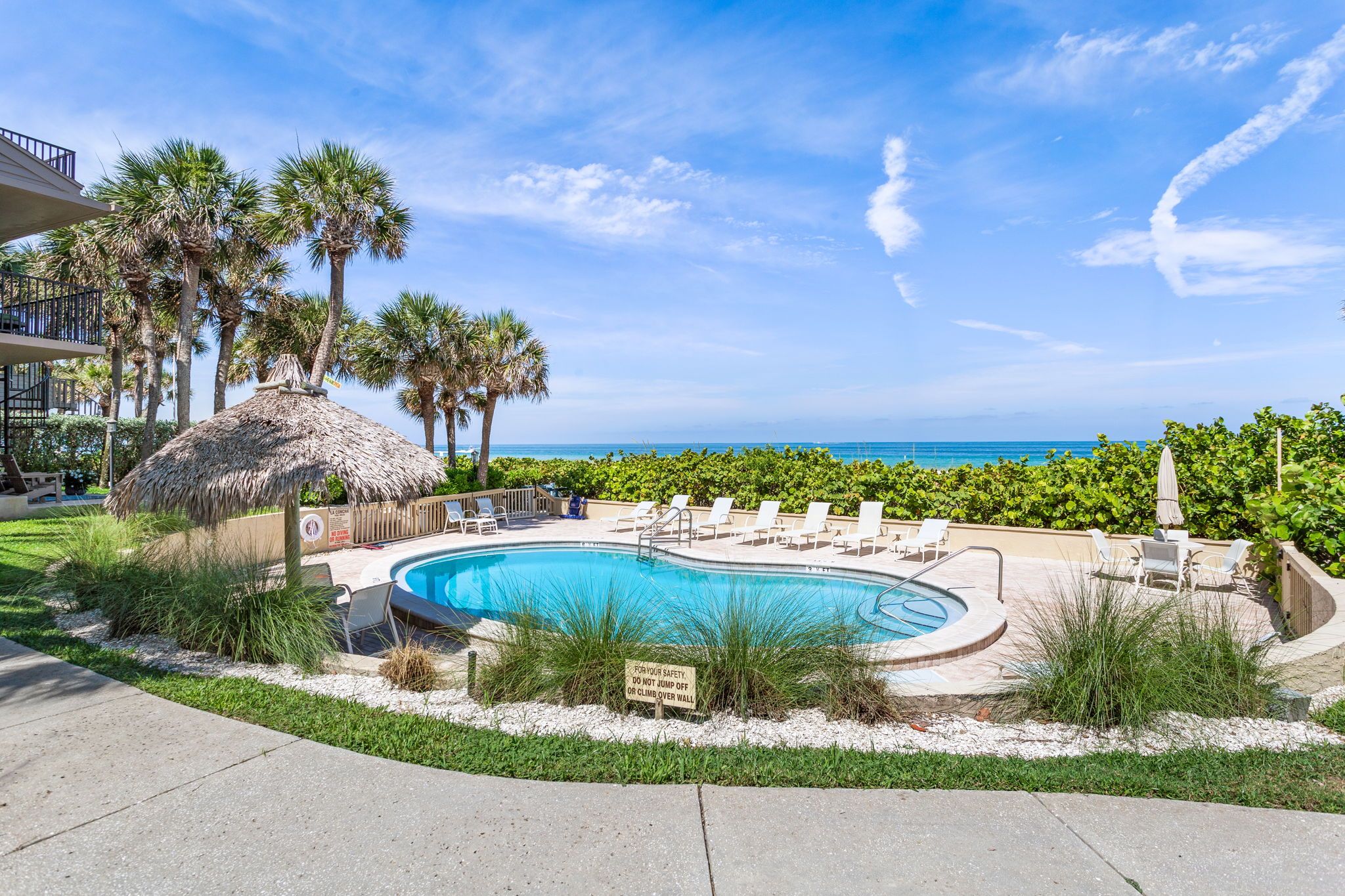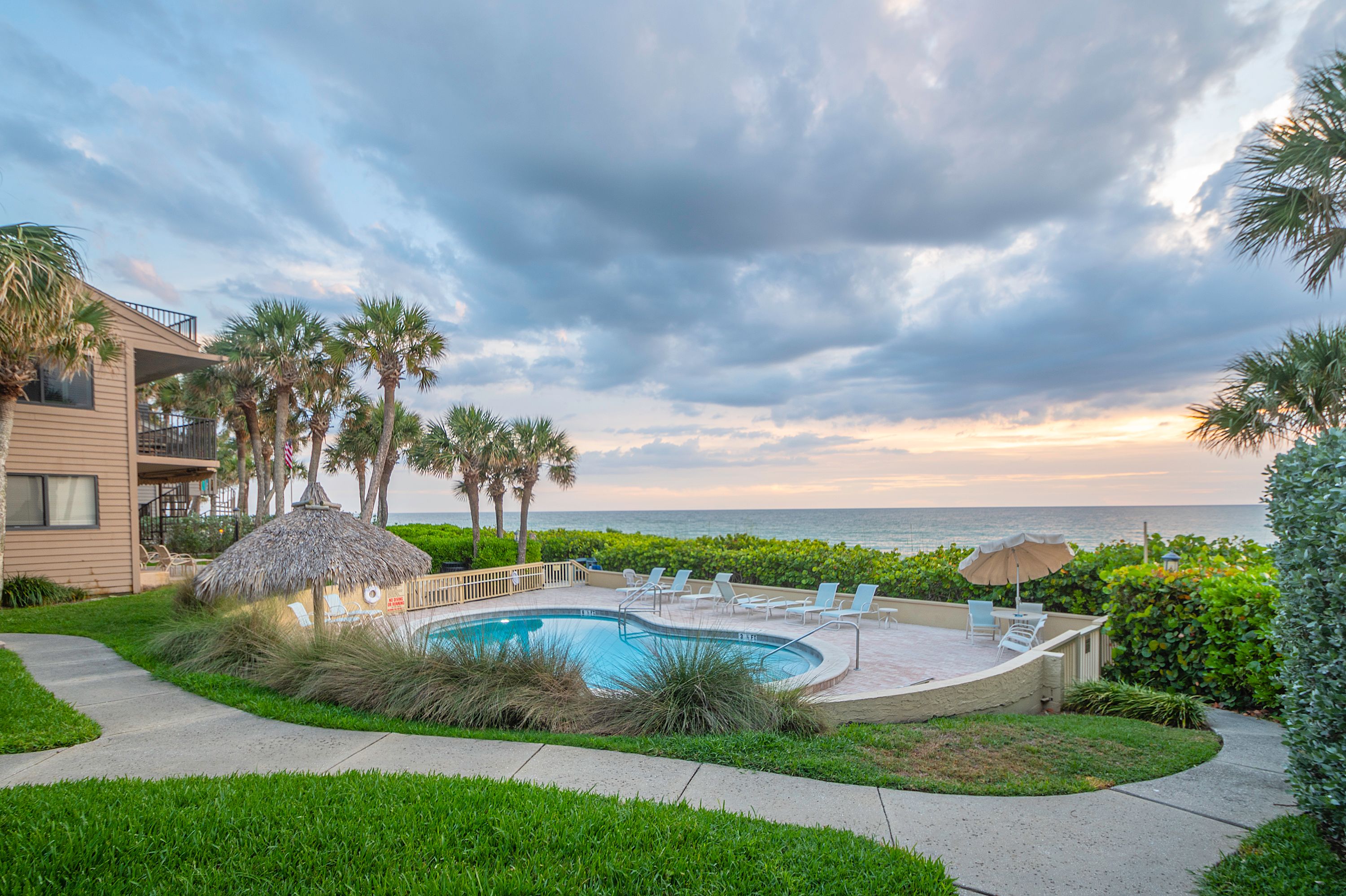 The community features a beachfront shared pool, BBQ grill area to use anytime. The beautiful landscaped community offers tropical plants and foliage to enjoy during a morning walk. This is all very private and is a quiet residential area.