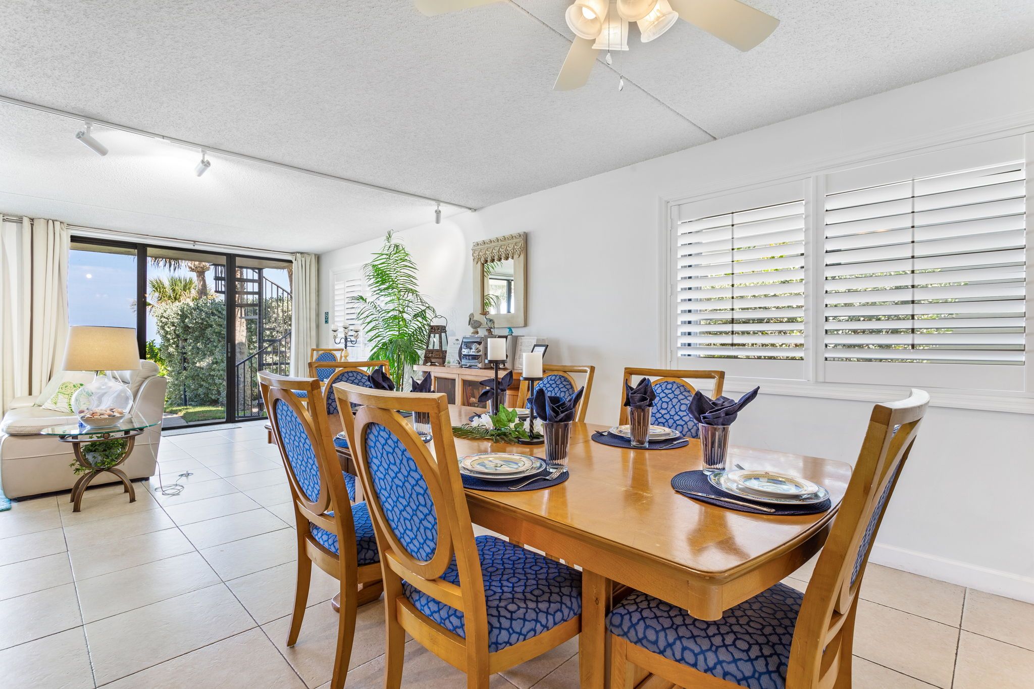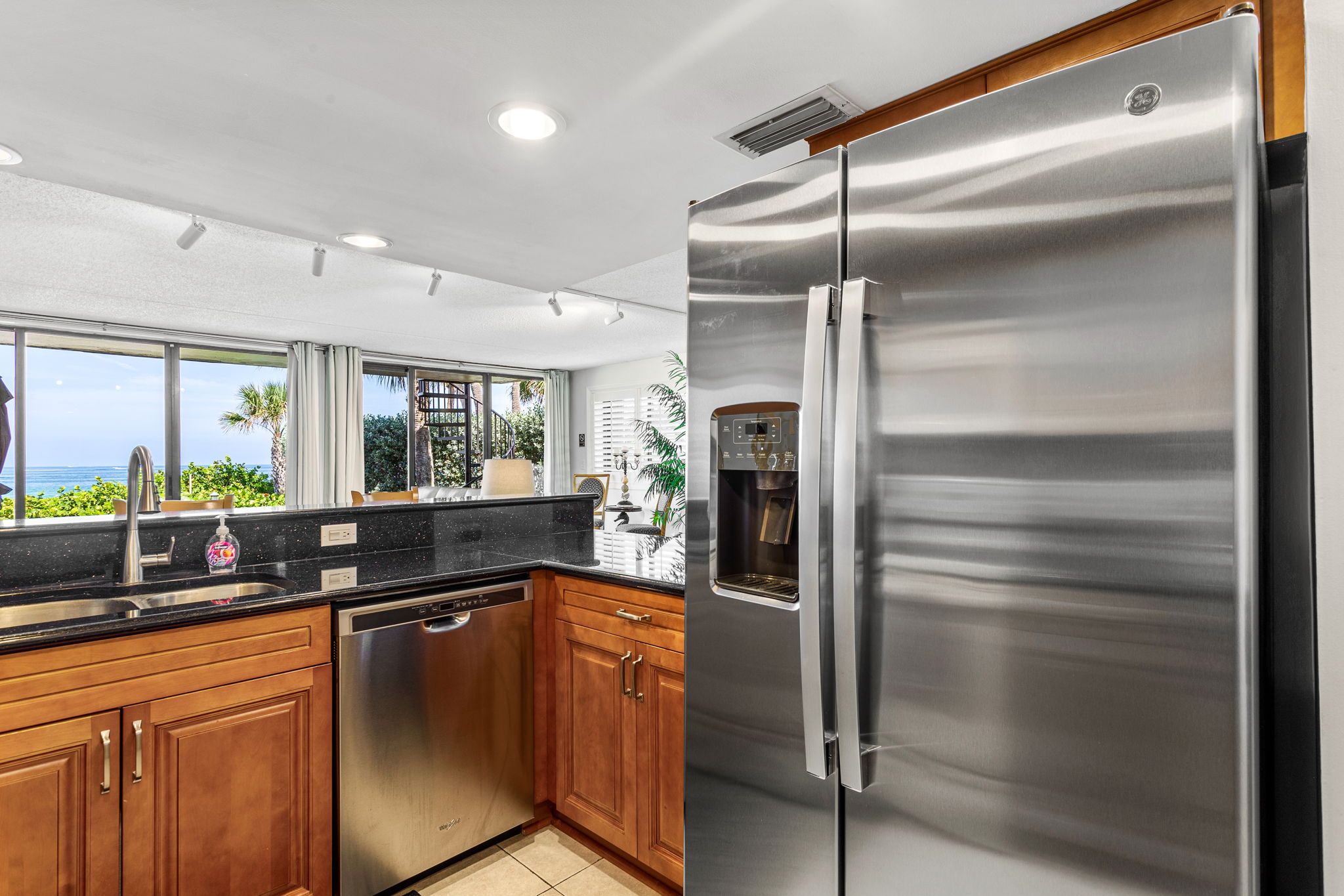 We have stayed in this beautiful unit many times now. The open floor plan kitchen, dining room and living room look out on the swimming pool, and the gorgeous Gulf of Mexico. This ground floor unit makes going to the beach so easy. And with just eight units sharing the pool, it is never too busy to enjoy. There are seven steps up from the parking lot to this ground floor unit, and just two steps down to the patio, pool and beach. It is a quiet area, not meant for a party crowd, but has plenty to do in the area, with Clearwater Beach just down the road and over the bridge to the north, and Indian Rocks Beach to the south.