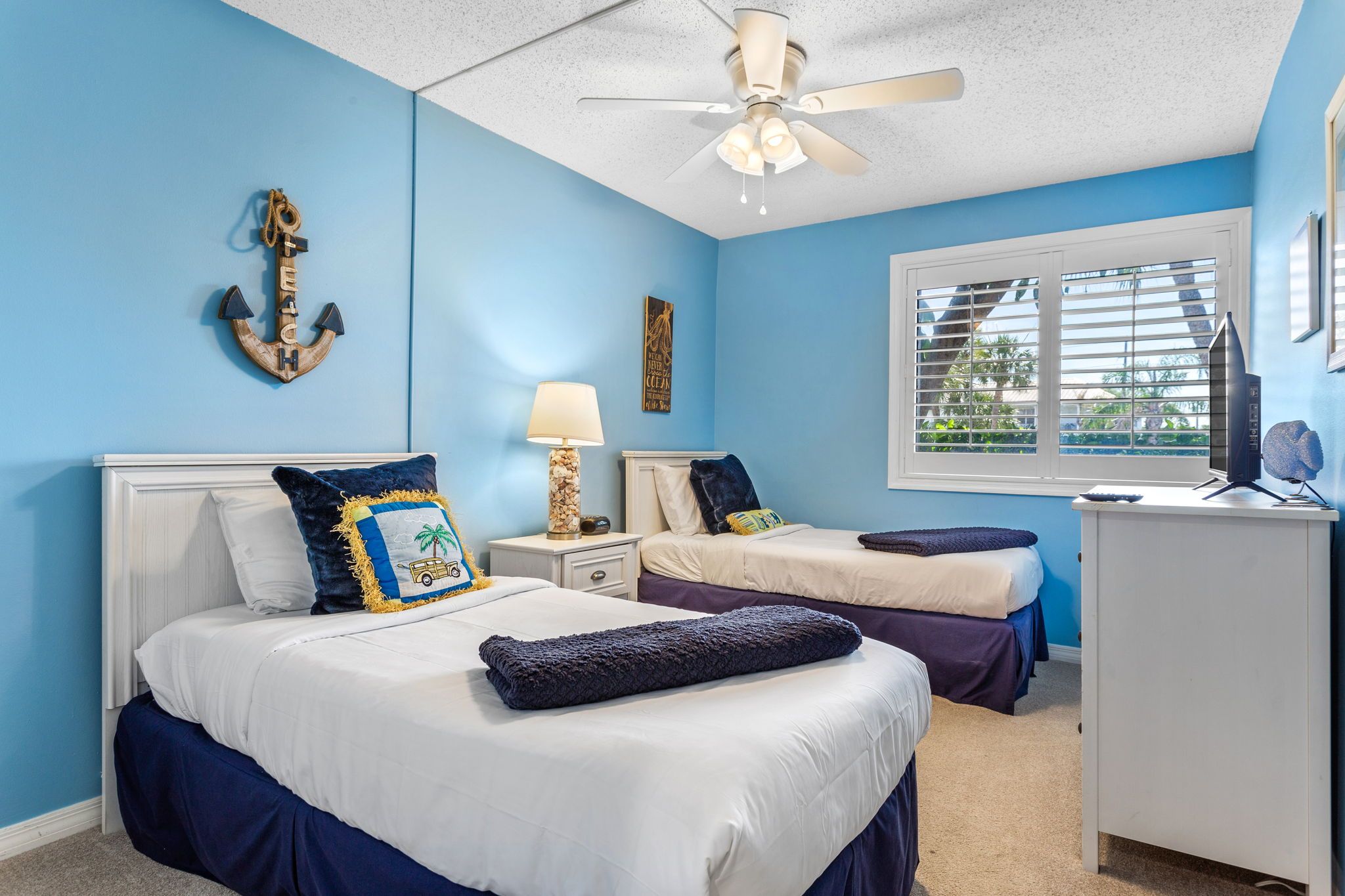 The Primary bedroom features a comfortable King bed with large closets and an ensuite bathroom. The second bedroom has 2 Twin beds. There is a hallway bathroom with a tub/shower combo. Enjoy the comforts of home in this place!