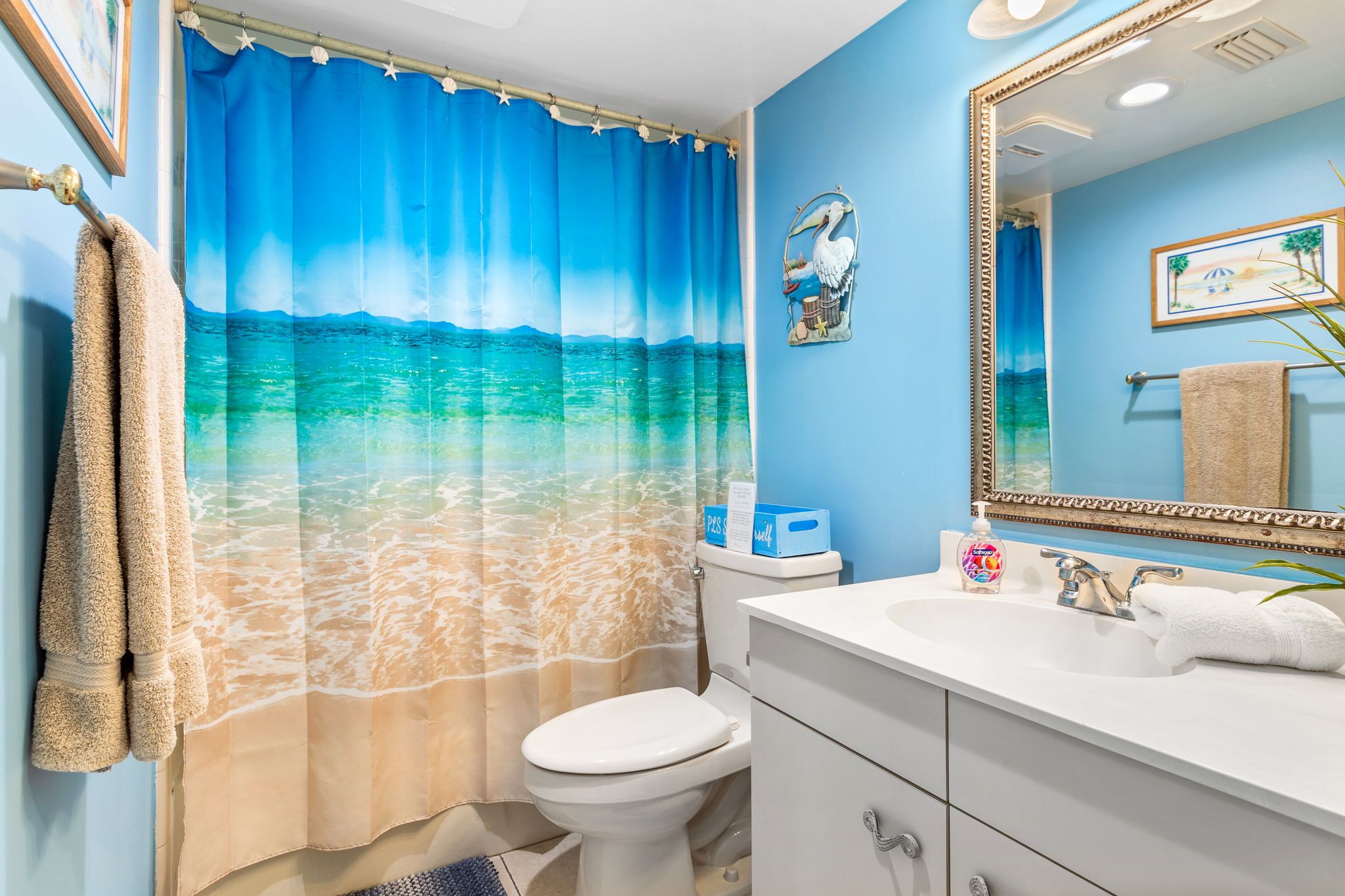 The place is magical and only a few steps from the beach. The kitchen is stocked, as well as, the condo for beach gear. My mother and I loved the condo very much and we will be back again soon.